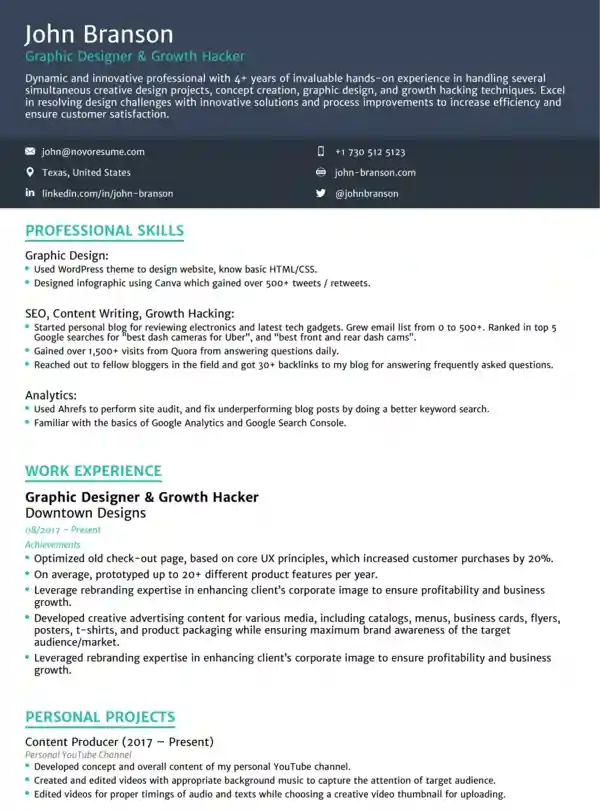 एक effective रिज्यूम फॉर्मेट में शामिल होते हैं: